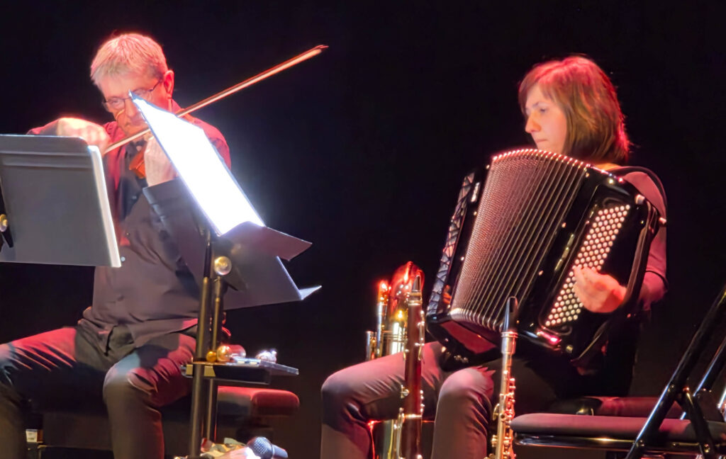 Le concert était riche et varié avec un superbe duo entre Arnaud Aguergaray au violon et Laura Bide à l’accordéon ou de belles prises de parole de l’alto de Cécile Deniélou.