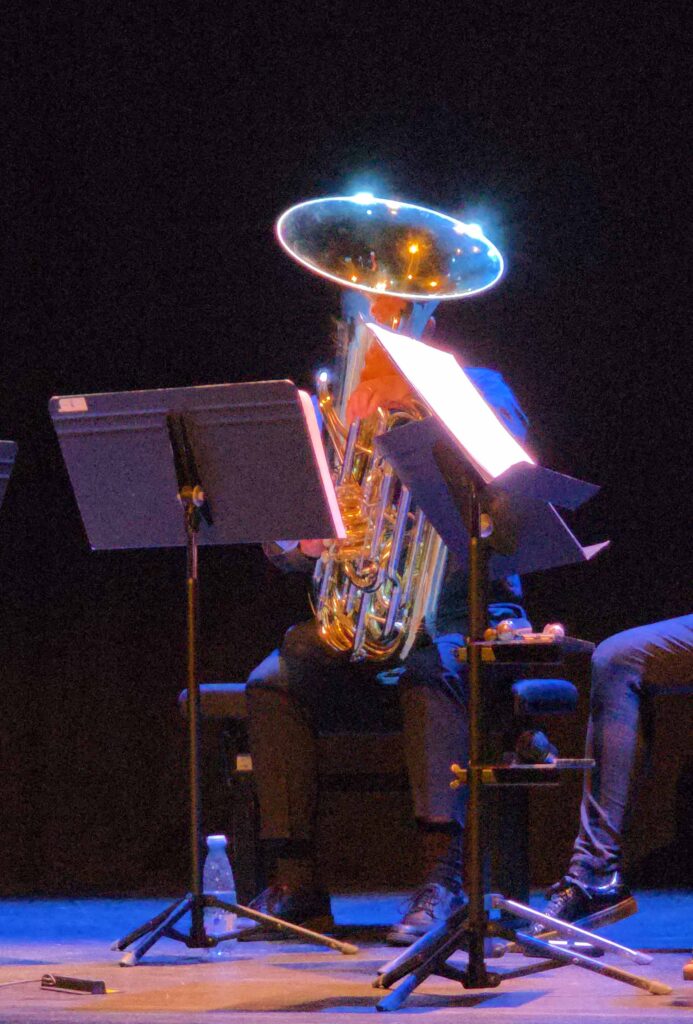 J’ai déjà dit il y a quelque temps combien j’appréciais la présence de Gérard Portellano au tuba dans cette formation, sans doute a-t-il voulu « pousser son avantage » avec un magnifique solo dans une danse roumaine de Ionel Dulmitru, jouée en finesse et virtuosité avec un très bel accompagnement de l’ensemble, la basse étant assurée par la clarinette-basse de Xavier Sallaberry, magnifiquement bien sûr.