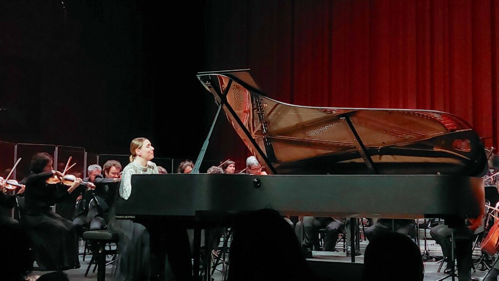 Vint ensuite le concerto pour piano de Grieg, interprété avec beaucoup de virtuosité, de maestria par l’excellente Judith Jauregui, venue en voisine vers nos contrées… nordiques. La poésie intrinsèque à cette œuvre était cependant un peu en retrait, m’a-t-il semblé. Un beau moment tout de même et qui fut suivi d’une très belle interprétation d’une pièce de Chopin, en bis, toute en sensibilité et poésie.