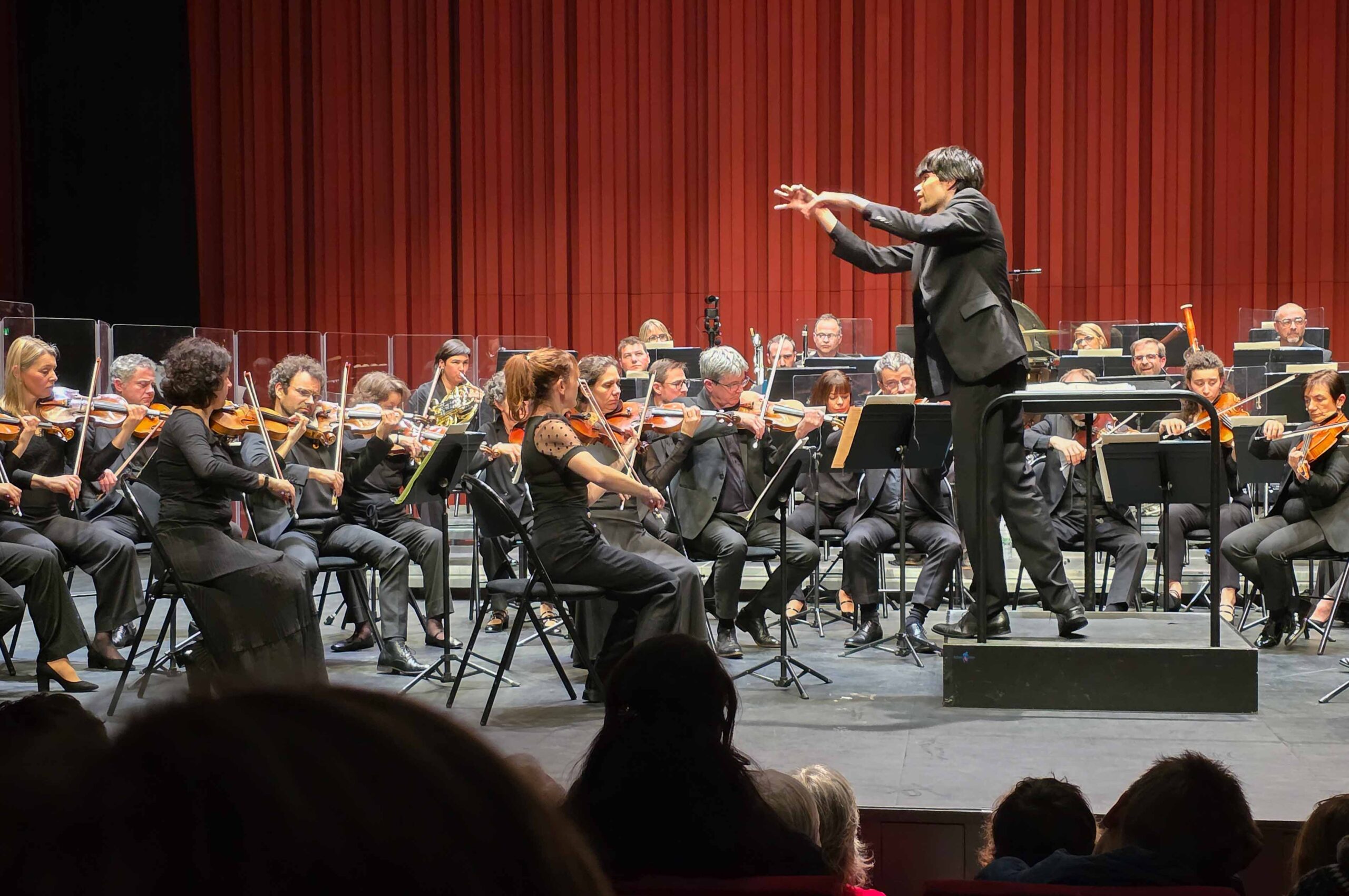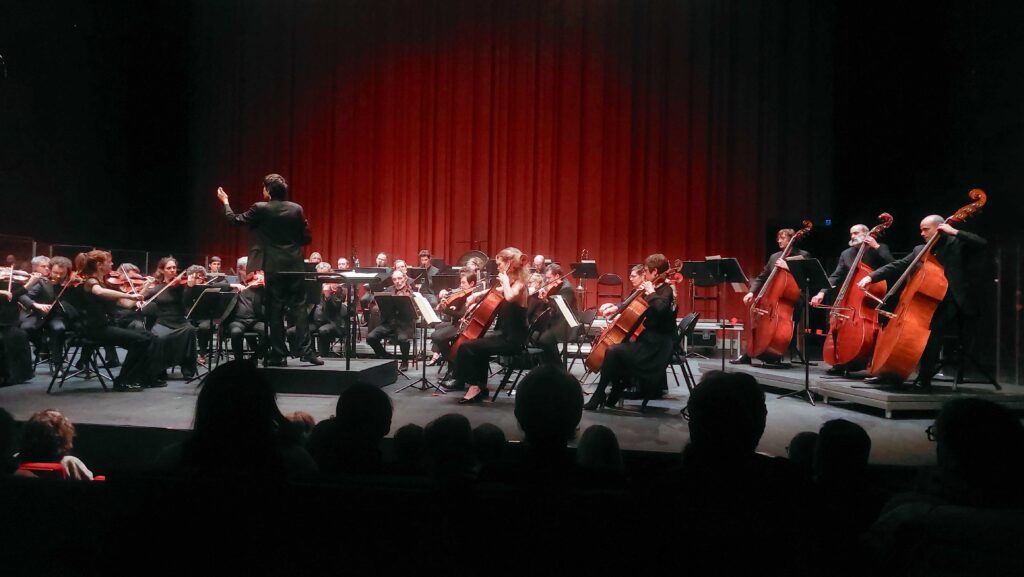 Un changement de plateau plus tard, le public put plonger dans une « Sigfried Idyll » émouvante, lyrique, parfaitement souple, riche en sonorités remarquables… bravo le pupitre de cors en particulier, bravo à tous les vents, les cordes…. Quel beau pupitre de violoncelles et de contrebasses, quelle clarté des violons et quelle belle présence des altos ! Et puis, il faut bien dire que le chef Léo Margue a une direction lyrique qui emporte l’enthousiasme. Je ne sais si c’est le mot qui convient pour son expressivité, sa gestuelle toujours adaptée au texte musical, qui donne l’impression qu’il va chercher tous les instrumentistes dans une interprétation qui suppose que tous et chacun soient mis à la juste place, toujours indispensables et avec une extrême précision. C’était beau à entendre… et fascinant à voir !